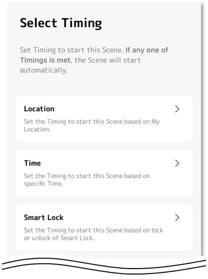 Setting the Auto mode is optional. Scenes can be executed by tapping the scene widget on the home screen or My Scenes screen without any settings.